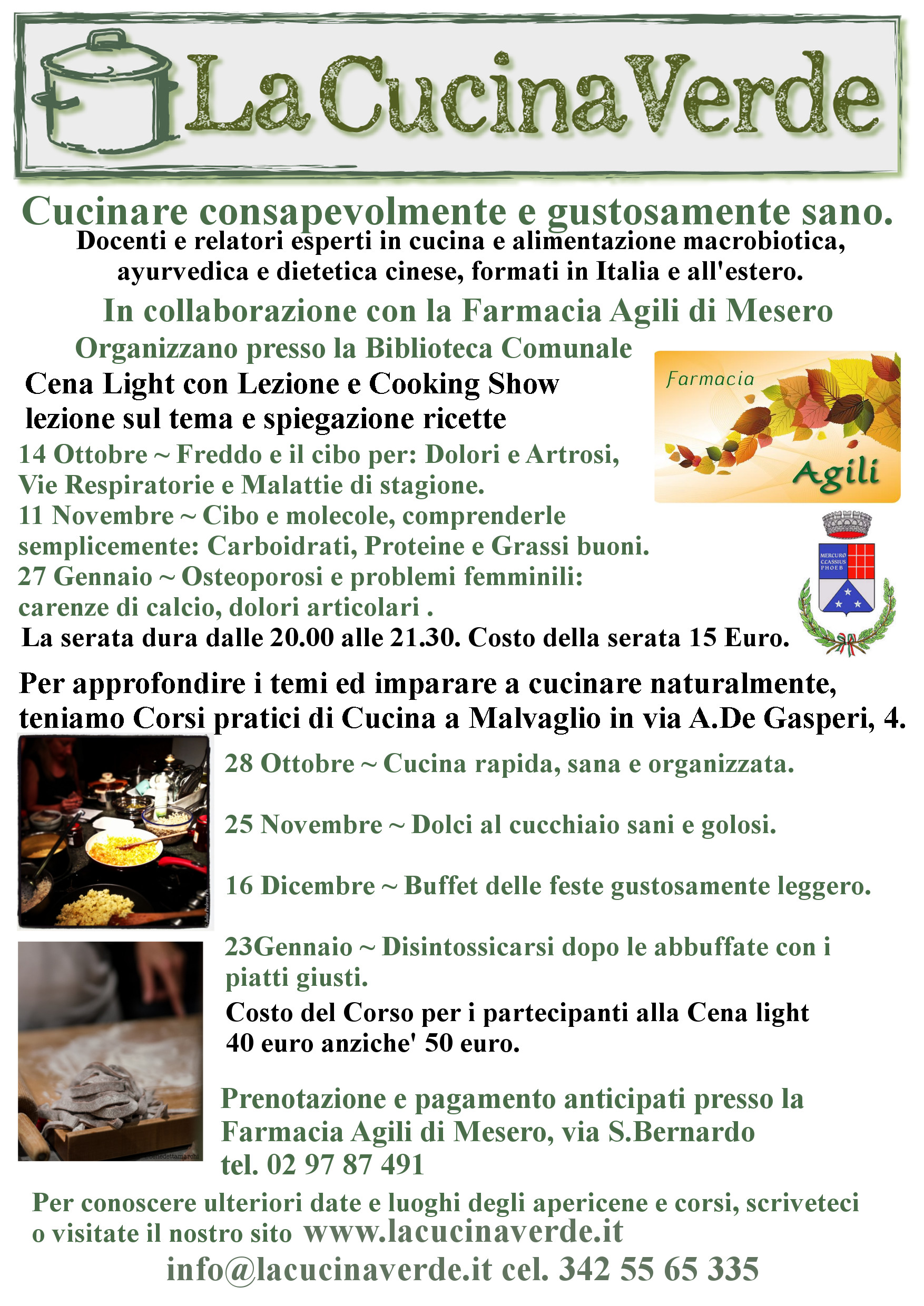 La Cucina verde con la Farmacia Agili di Mesero organizzano presso la Biblioteca Comunale un percorso con docenti e relatori esperti in cucina e alimentazione macrobiotica.