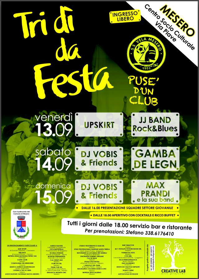 S.S. Vela Mesero organizza "Tri dì da festa!" nei giorni 13-14-15 settembre