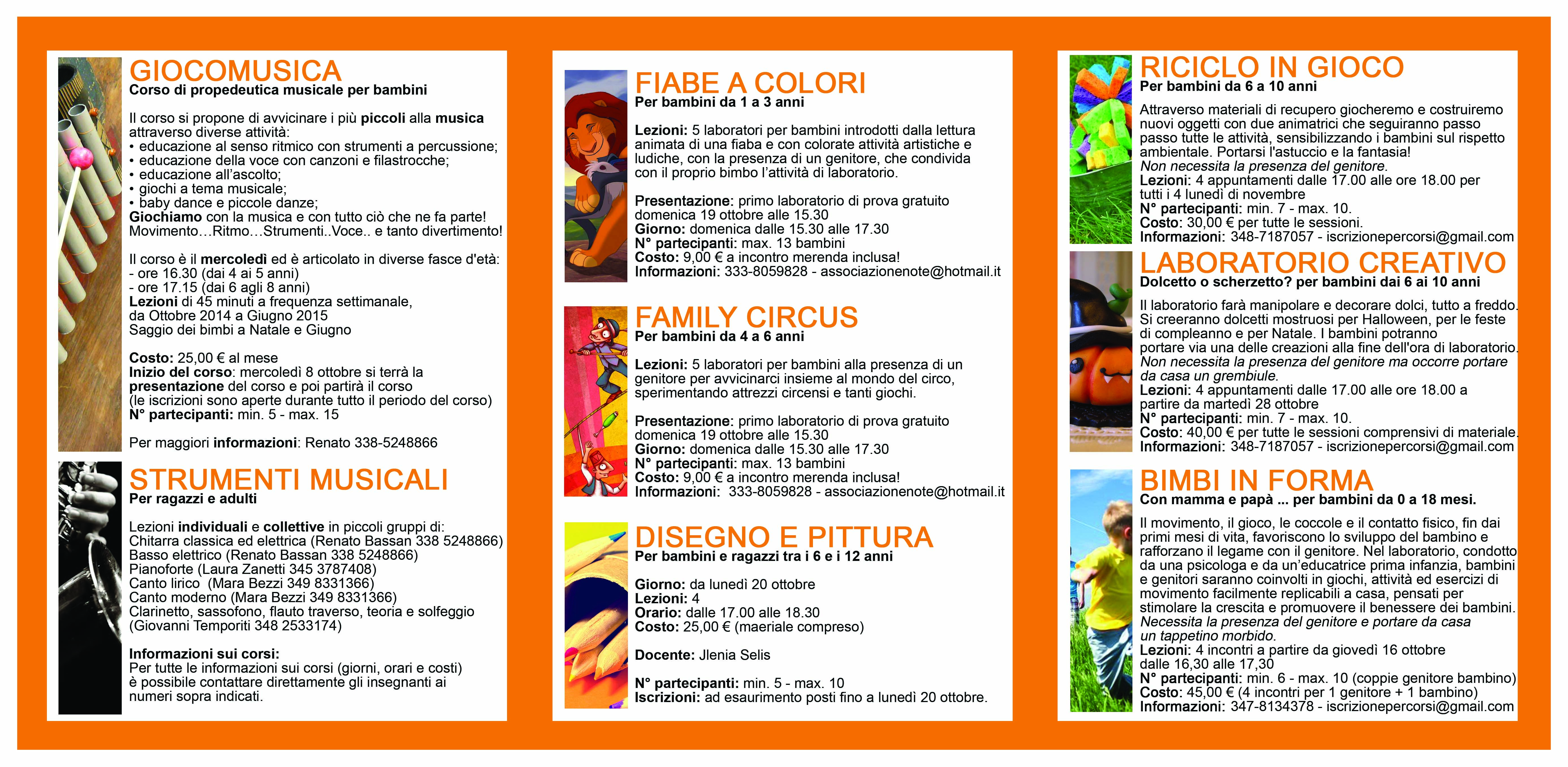 Cliccate sulle icone qui sotto a destra per scaricare i file esterno e interno della brochure, che contengono l'elenco dei corsi e le modalità di partecipazione. Le brochure cartacee saranno disponibili da venerdì 3 ottobre presso il municipio e la biblioteca.