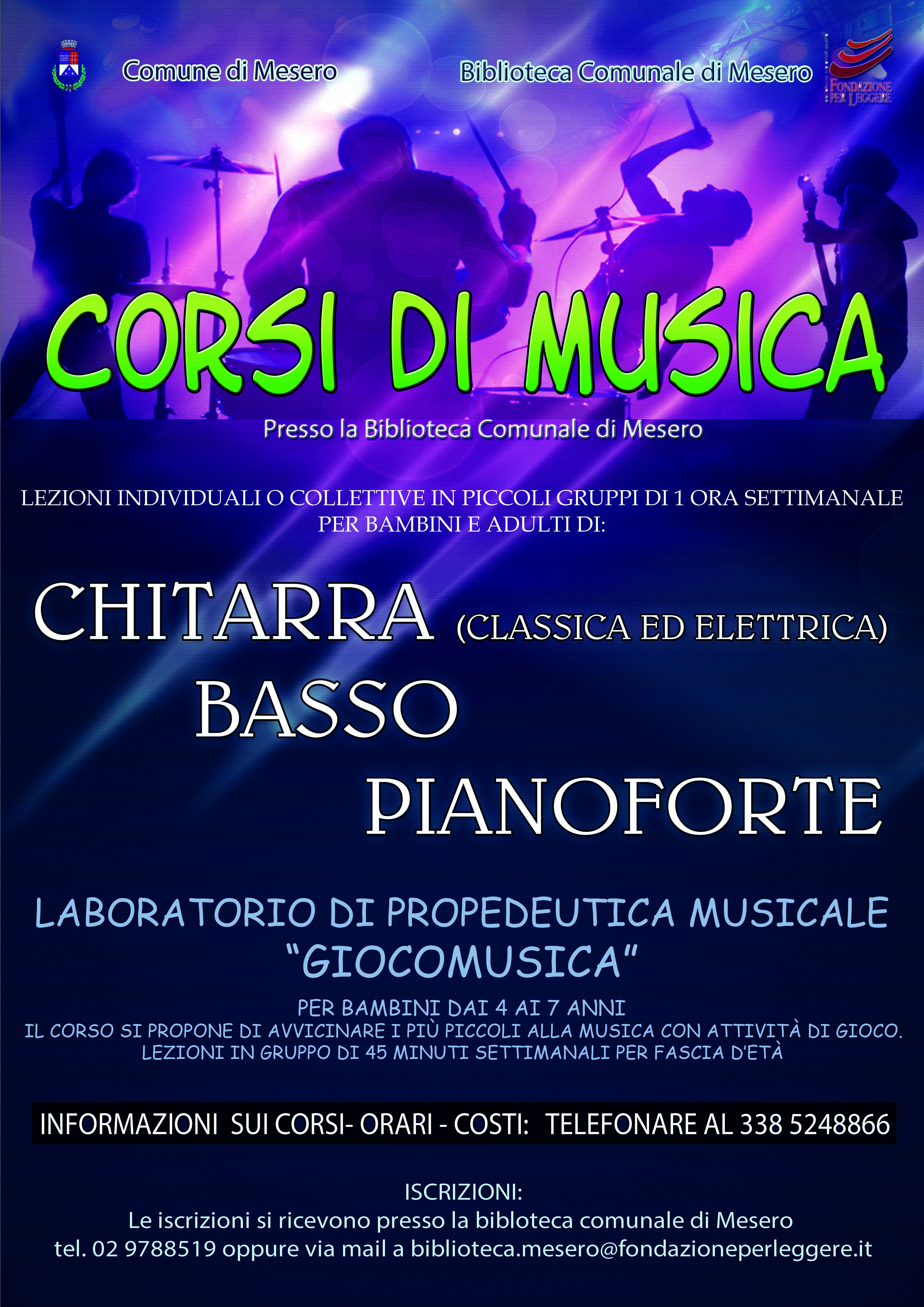 Se siete interessati ad avere maggiori informazioni potete trovare il materiale con i programmi, orari, ecc. in biblioteca, scrivendo alla mail info@comune.mesero.mi.it o contattando direttamente i docenti.