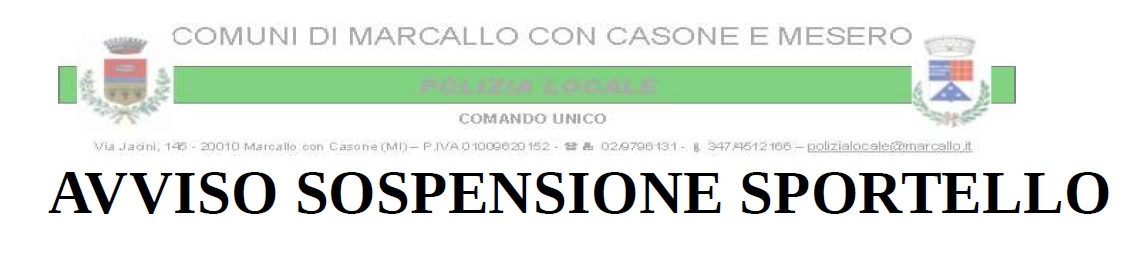 AVVISO SOSPENSIONE SPORTELLO