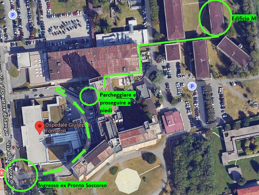 Accesso previo contatto telefonico al Numero Europeo Armonizzato (NEA) 116117, ingresso utenti da Via al Donatore di Sangue n.48 (citofonare in corrispondenza della sbarra per entrare - sia a piedi che in macchina - e proseguire seguendo i cartelli e le frecce verdi sull'asfalto).
