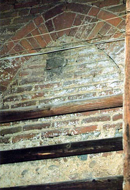 La parte superiore ne ricorda il periodo più antico: l'ara romana, a sinistra, e, a destra, la centuriazione, cioé la divisione del territorio in grossi appezzamenti quadrati secondo il metodo dei romani.